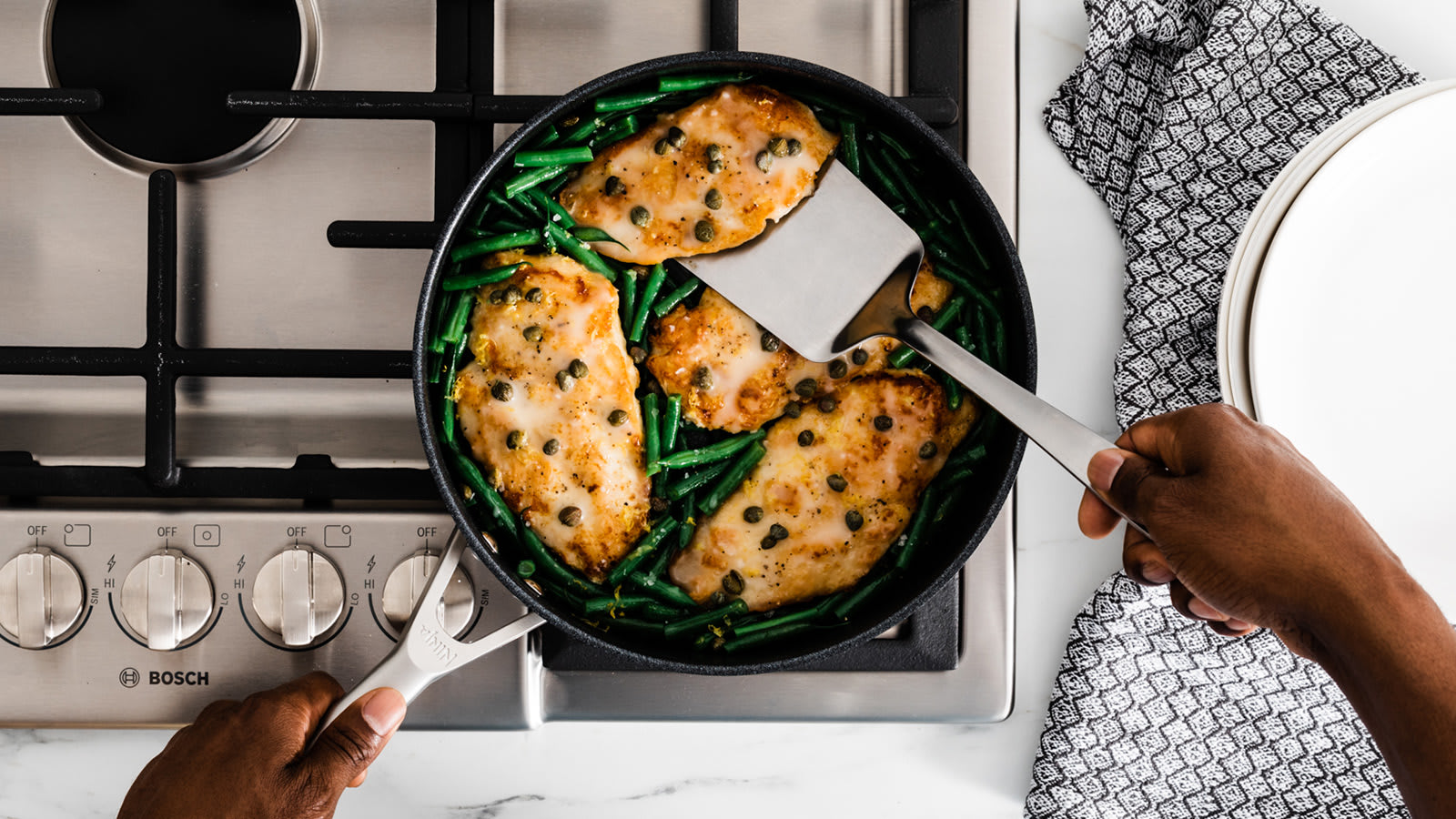 - Cook using little to no oil without sticking